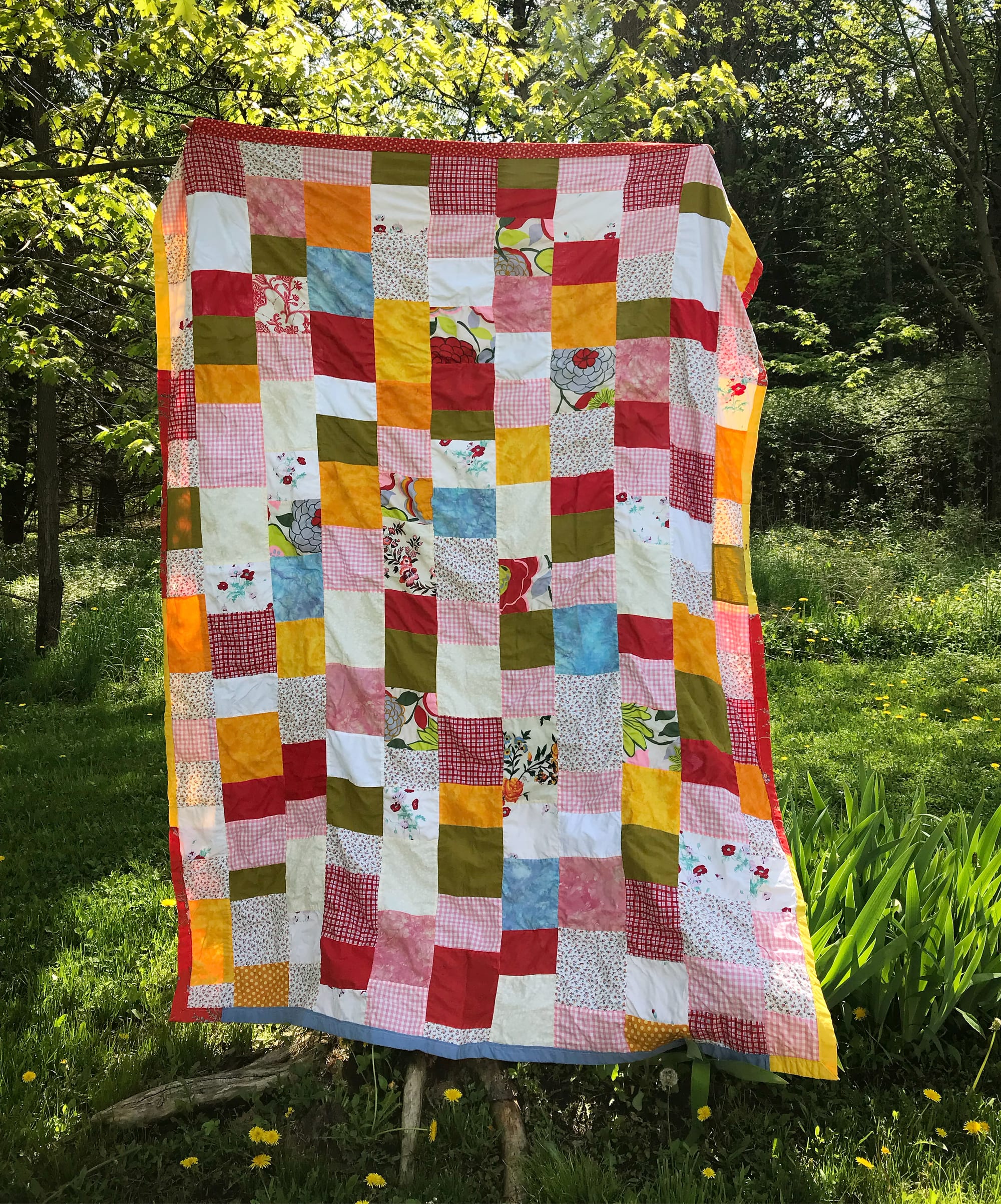 The warmer weather we had earlier this month meant that it was time to remove a layer of bedding. Unfortunately, the youngest member of our household (who also happens to be the sweatiest sleeper) doesn’t have a summer quilt like her older brother does. So I made a promise to her that she shall have one too, and have been frantically working away on a new quilt for her bed. Luckily the weather cooled off again last week so she hasn’t been overheating while she waits. It’s coming together nicely (and quickly!) and I can’t wait to show you the results. I find myself thinking a lot of my grandmother Sibyl who once told me that she didn’t make quilts, she made blankets (including the one currently covering my little girl). I think she would approve of my current efforts: efficient and economical. More on that next time.