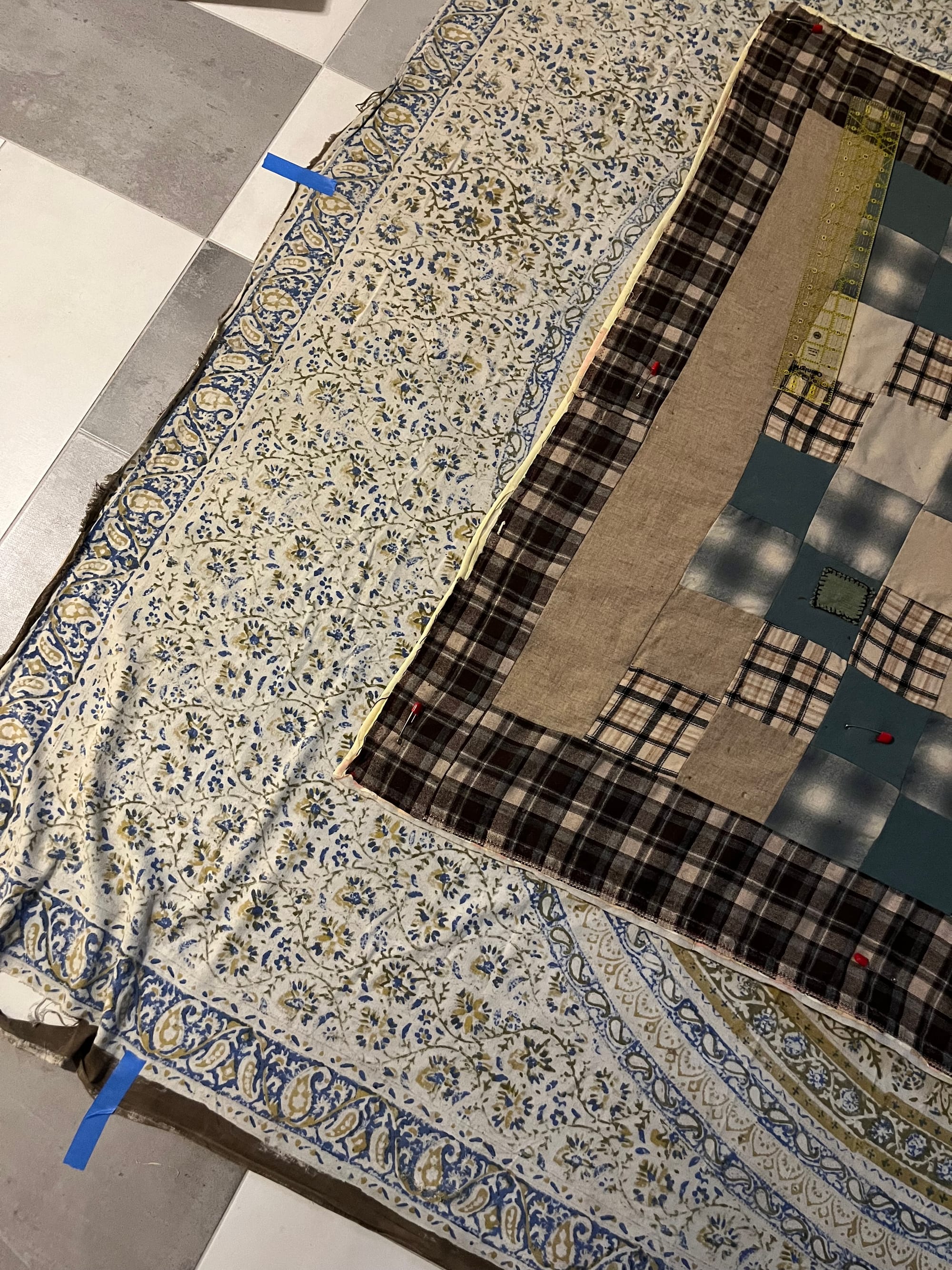 Replacing the old quilt back, old skirt as template, new one taking shape