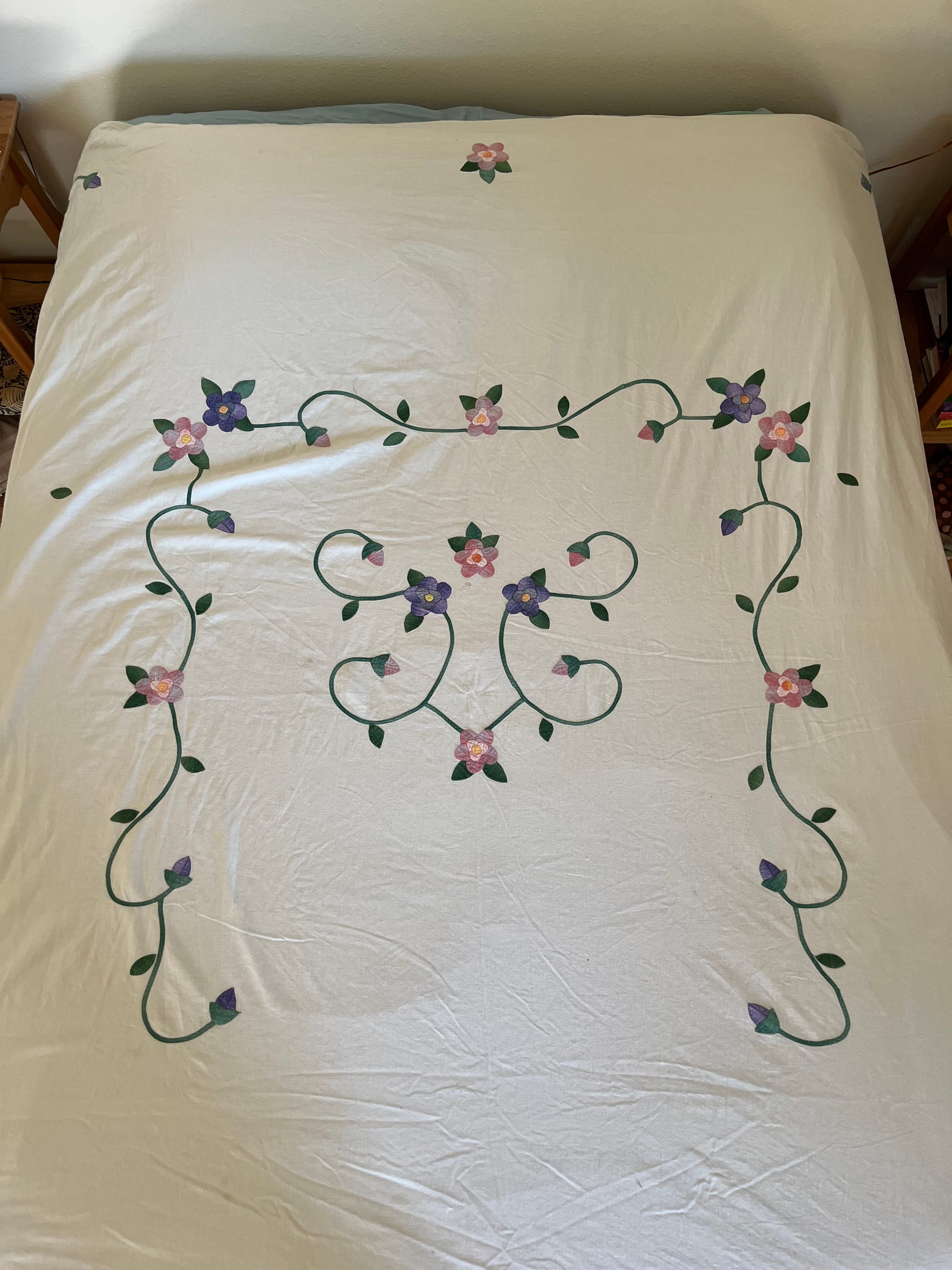 It’s too good of a bedspread! Look at the beautiful appliqué!